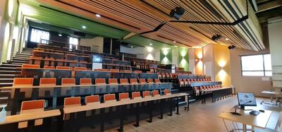 L’institut utilise des salles de cours avec équipement numérique, deux amphithéâtres avec système de visioconférence, un espace de simulation en santé équipé de matériel haute-fidélité.