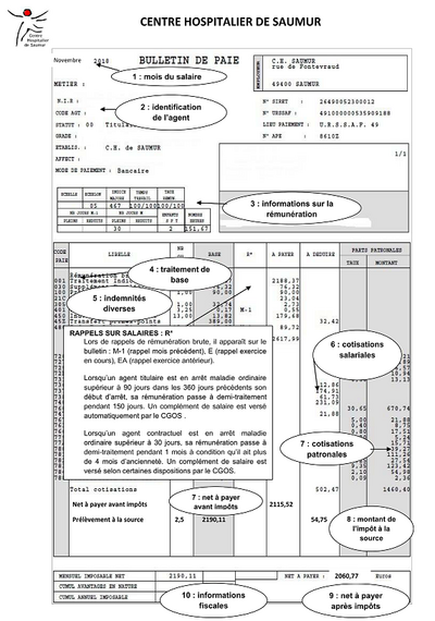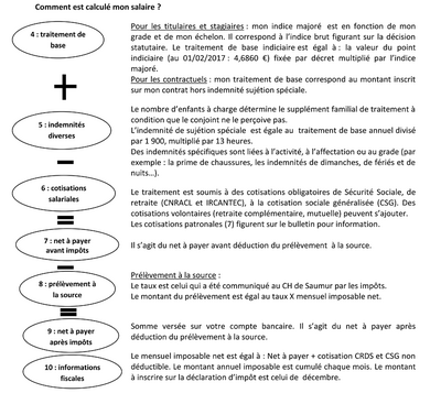 - Salaire de base (traitement indiciaire), défini par le grade et l’échelon