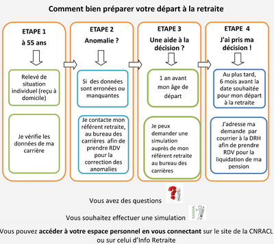 En premier lieu, nous vous invitons à consulter le service Info retraite afin :